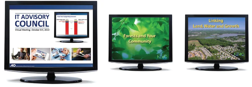 These presentations were created to help inform local governments, and the public, about the benefits of sustaining healthy forests and clean water eco-systems within the Chesapeake Bay region while promoting the National Park Services's Chesapeake Nemo as a leading resource for assisting communities in maintaining heathy forest environments. These presentations are examples of a minimalist approach in regards to the use of text blocks and bullets, a design style that assists, but does not compete with the presenter.